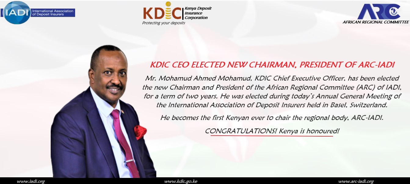 Nairobi, 12th March 2021-The Kenya Deposit Insurance Corporation’s (KDIC) Chief Executive Officer Mr Mohamud Ahmed Mohamud, has been elected the new Chairman and President of the African Regional Committee (ARC) of the International Association of Deposit Insurers (IADI).