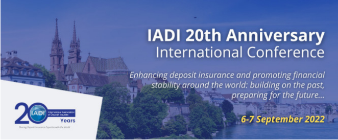 The International Association of Deposit Insurers (IADI) held its 20th Anniversary International Conference on 6 - 7 September 2022 in hybrid format, in Basel, Switzerland, titled “Enhancing deposit insurance and promoting financial stability around the world: building on the past, preparing for the future…” with 260 participants from more than 75 institutions worldwide attending the event.